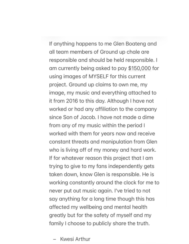 ACCRA, Ghana – Renowned Ghanaian rapper Kwesi Arthur has issued a chilling public warning, holding his former record label, Ground Up Chale, responsible for his safety following a heated legal and financial standoff.